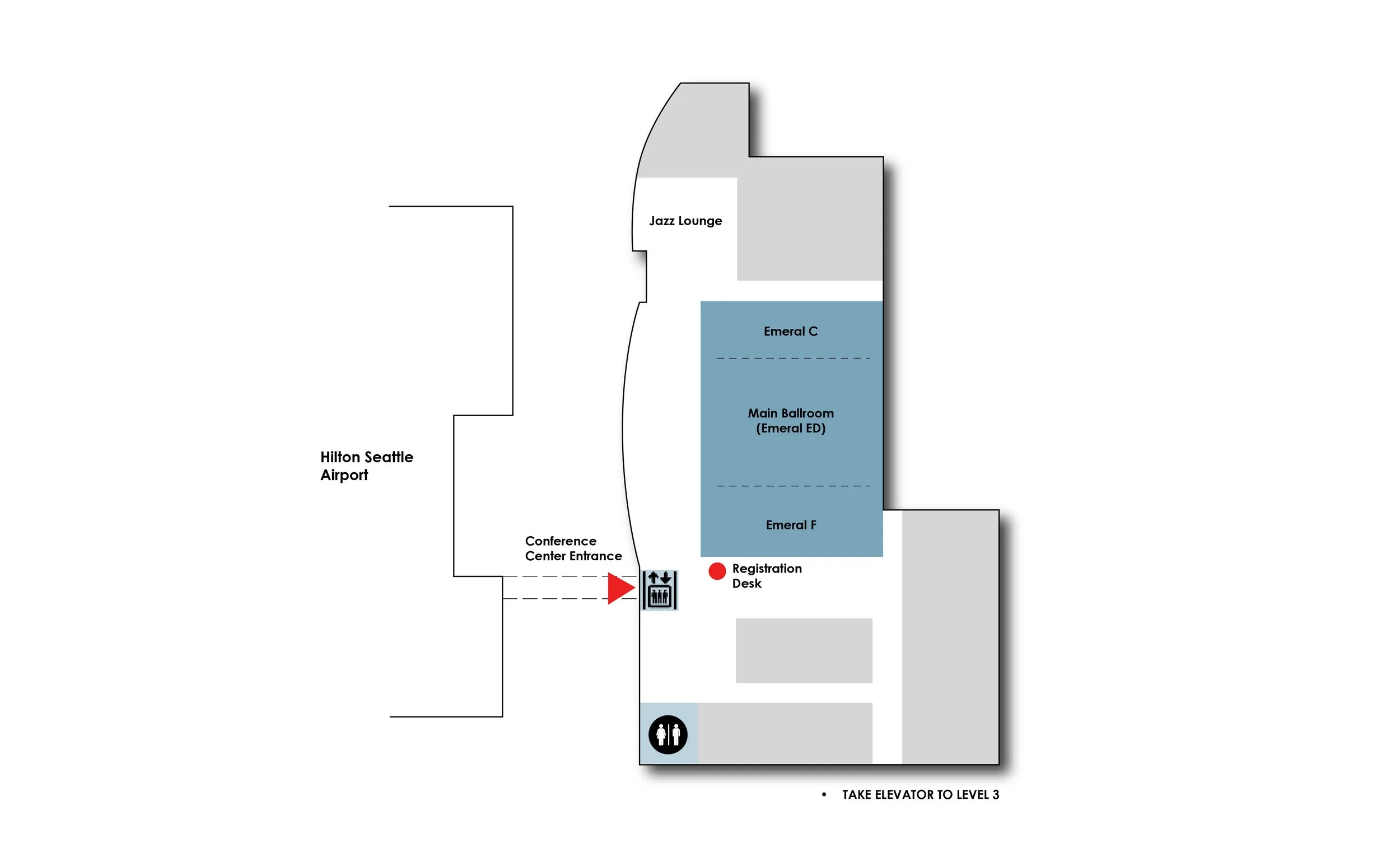 All event activities will be held in the Conference Center at the Hilton Seattle Airport - 17620 International Blvd, Seattle, WA, 98188. See below for a map of the venue and directions from the airport.